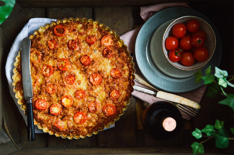 - Grädda pajen i mitten av ugnen i 20 minuter, tills osten fått fin färg. Låt pajen vila lite och servera med valfria tillbehör.